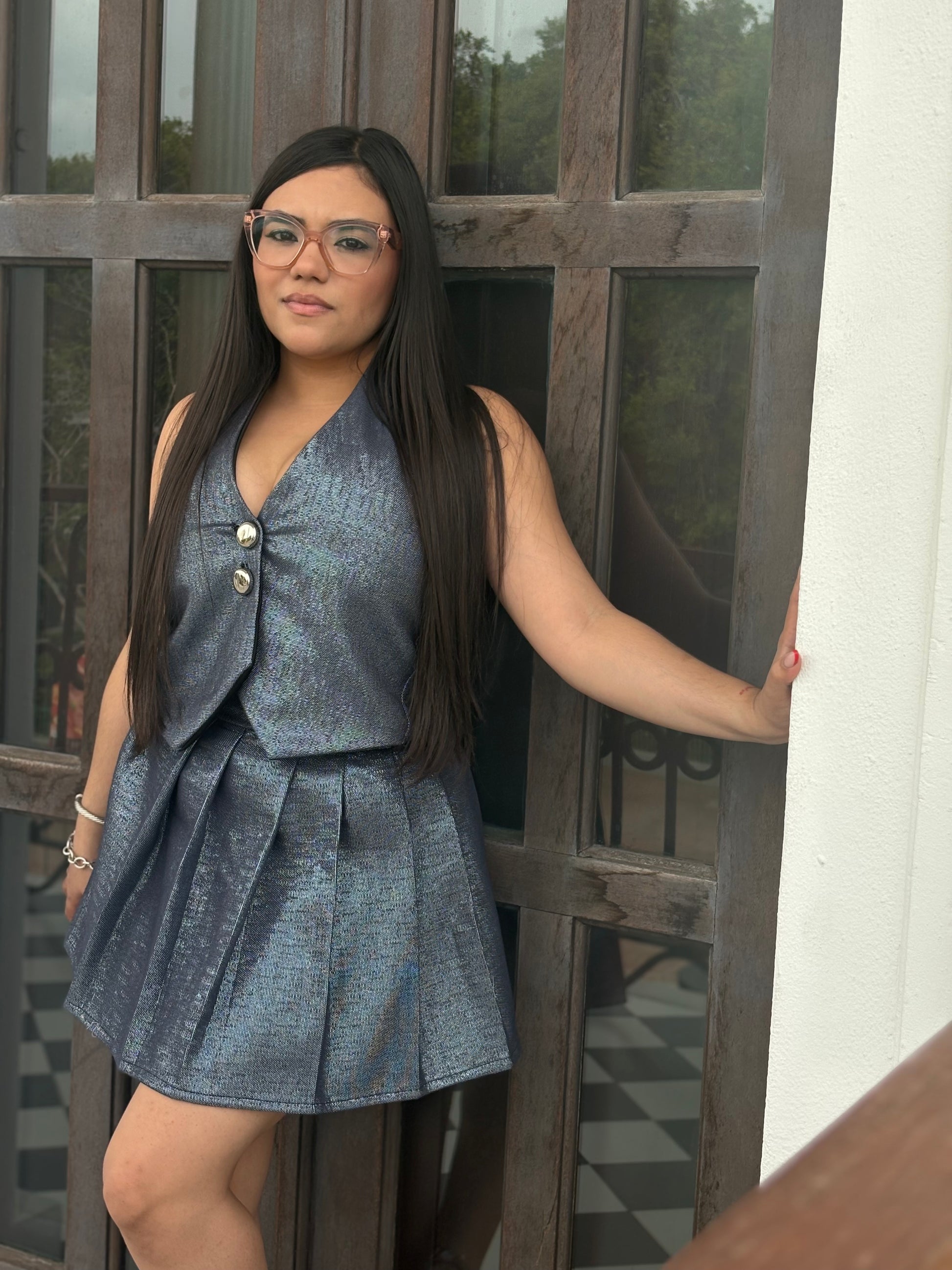 Set La falda de pliegues y vestido a juego de Ecliptica es una opción elegante para cualquier ocasión. Con un set de falda y vestido, tendrás múltiples posibilidades de vestirte. Los botones chunky de plata añaden un toque moderno y sofisticado a este conjunto versátil.